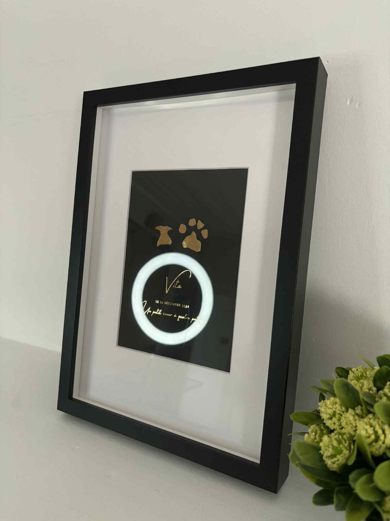 Ces cadres décoratifs s’intègrent parfaitement dans votre intérieur et constituent un cadeau idéal pour les amoureux des animaux. Chaque empreinte devient une pièce personnalisée, pleine d’attachement et de souvenirs à partager pour toujours.